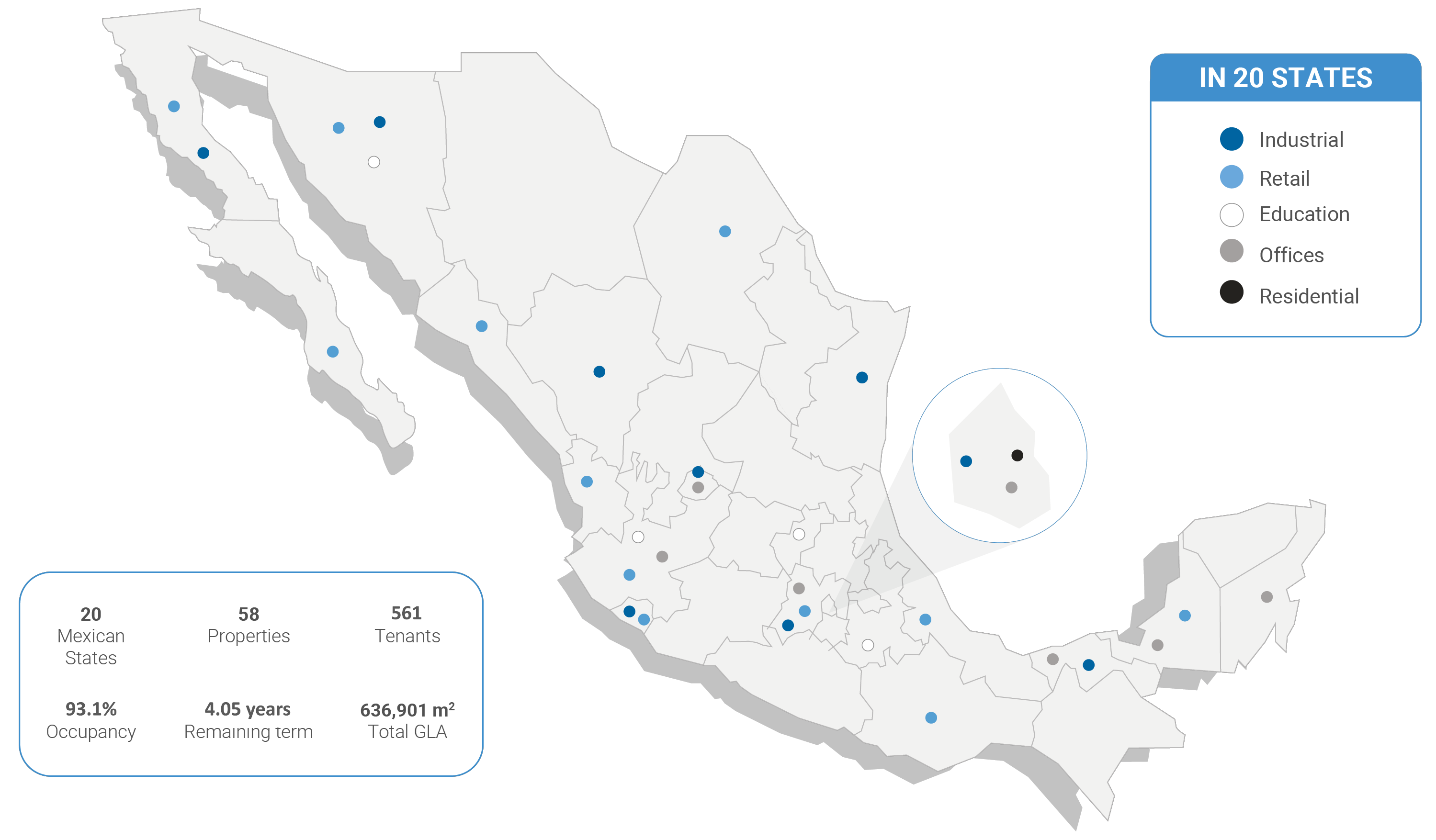 | Heredit Acueducto | Retail | In Process of being delivered | Guadalajara, Jalisco | 2,200 | 0.34% |